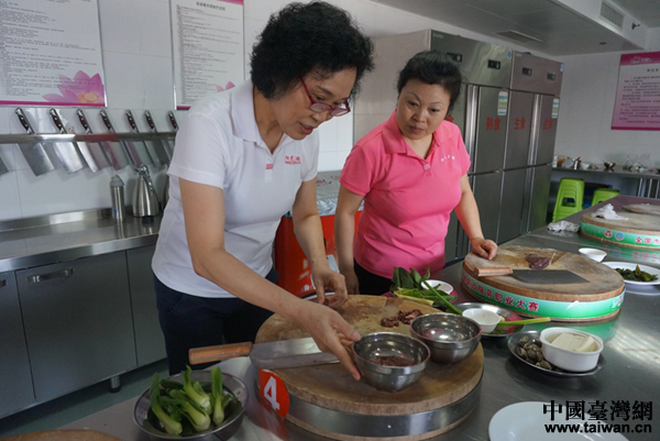 劉桂香指導徒弟做月子餐。(中國臺灣網(wǎng) 雍紫薇 攝)
