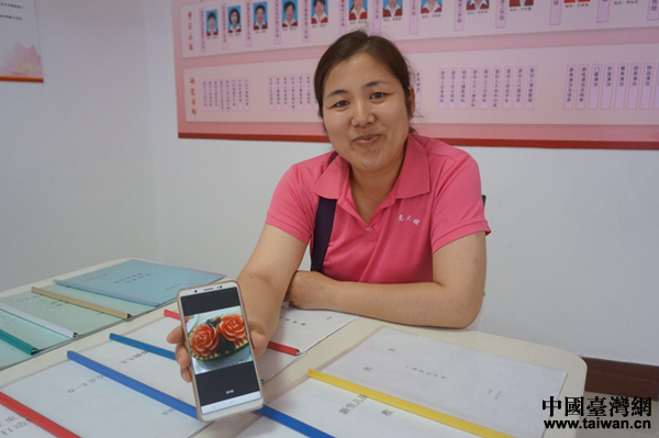 徒弟李青展示自己培訓成果。(中國臺灣網(wǎng) 雍紫薇 攝)