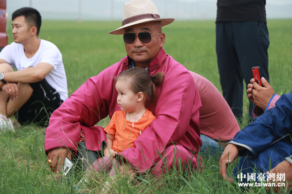 有牧民帶著孩子來(lái)看演出。(中國(guó)臺(tái)灣網(wǎng) 李寧 攝)