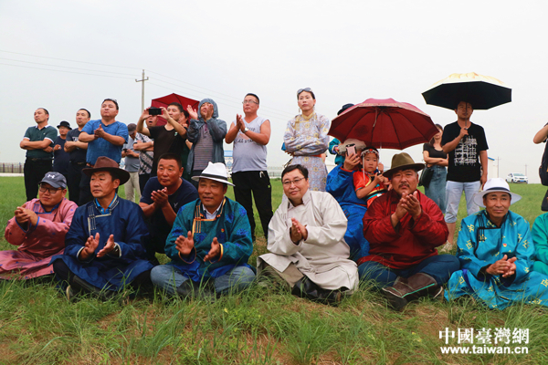 中國(guó)臺(tái)灣網(wǎng)7月23日訊 (記者 李寧)盡管離家有40多里路,天氣陰晴不定,孟克吉日嘎拉還是穿著蒙古盛裝趕來(lái)。這天是烏蘭牧騎要來(lái)演出的日子,孟克吉日嘎拉很早就約上了好朋友,同行的還有他的妻子、兩個(gè)孩子。此刻,他們穿著鮮艷的蒙古長(zhǎng)袍,坐在草地上欣賞著眼前蘇尼特右旗烏蘭牧騎演員們的演出。