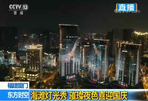 廈門夜景最絢麗的地方,這里的二十幾棟大樓,每天晚上都會變身燈光秀的舞臺。不過國慶期間和平日還是有所不同,為慶祝國慶進(jìn)行了特別的設(shè)計和修改。