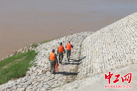 雖然已入秋,李濤還像往常一樣,一大早就在黃河堤壩上來回巡查。“現在還在汛期,一天要仔細巡查兩次才能放心!鼻鍜叩添斅访、修整坍塌備防石垛、填墊水溝浪窩、查看水位……9.5公里長的堤防,34段壩岸,巡查一趟下來要花好幾個小時的時間,李濤身上的衣服往往被汗水濕透。