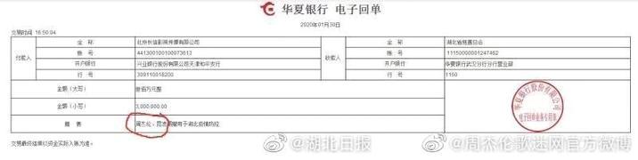 據(jù)湖北日?qǐng)?bào)微博,1月30日,周杰倫攜妻子昆凌通過(guò)湖北省慈善總會(huì)向防疫一線捐贈(zèng)300萬(wàn)元。