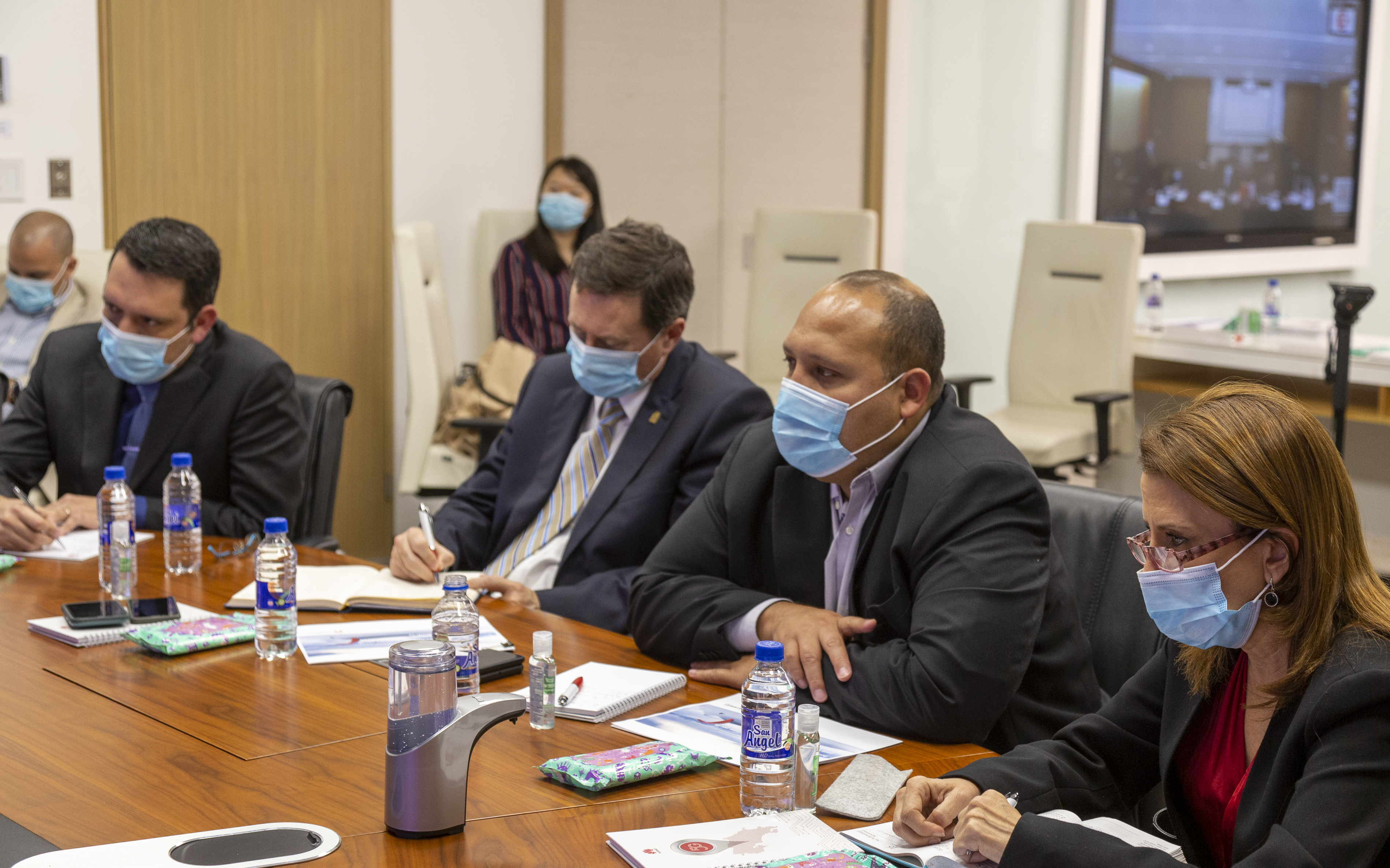 這是3月18日在哥斯達黎加圣何塞拍攝的視頻連線會議現場。當地時間18日晚,中國和哥斯達黎加的醫學專家和衛生部門官員進行了一場視頻連線會議,交流抗擊新冠肺炎疫情的經驗。新華社發(達托攝)