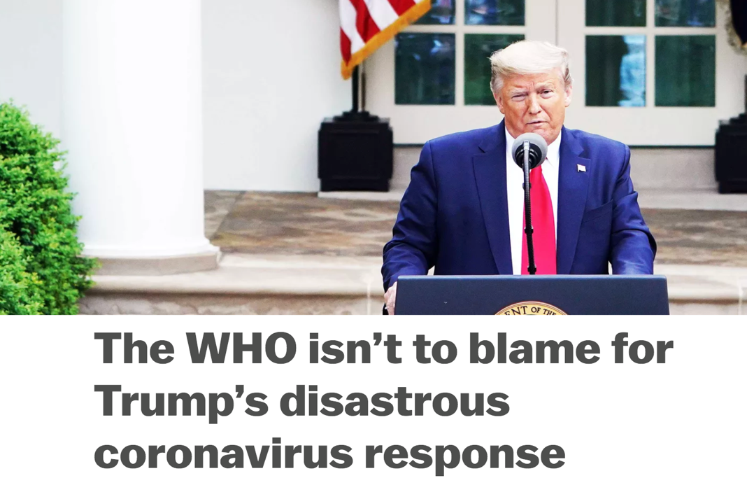 △美國(guó)知名新聞評(píng)論網(wǎng)站Vox表示,世衛(wèi)組織不該為特朗普的災(zāi)難性抗疫舉措承擔(dān)后果
