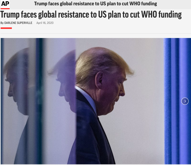 △美聯(lián)社刊文報(bào)道國(guó)際社會(huì)一致批評(píng)特朗普斷資世衛(wèi)組織