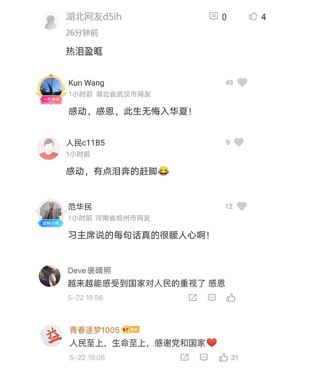 許多網(wǎng)友回應(yīng):“越來越感覺到國家對人民的重視了”“真的很驕傲,在我們國家人民群眾永遠(yuǎn)是最重要的”“人民的力量是無窮的”……