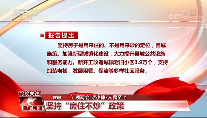 住房:堅持“房住不炒”政策