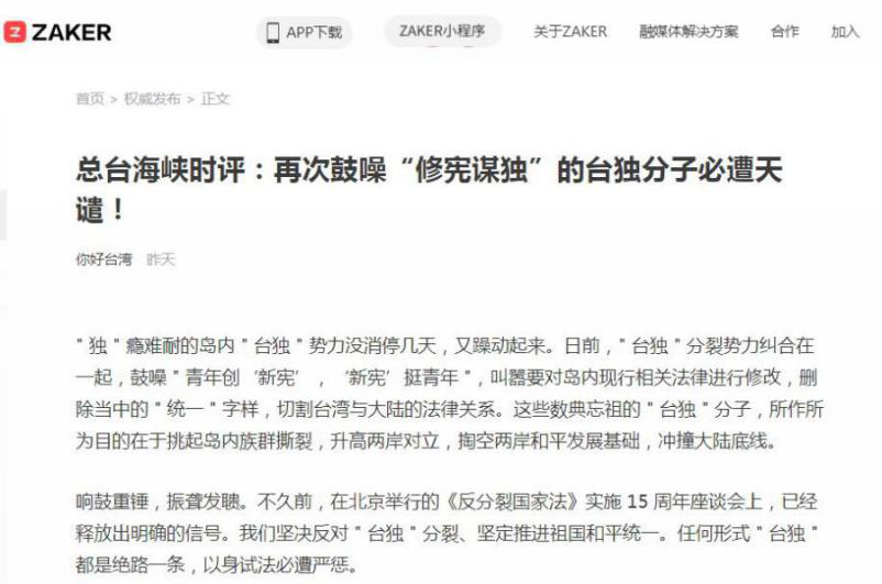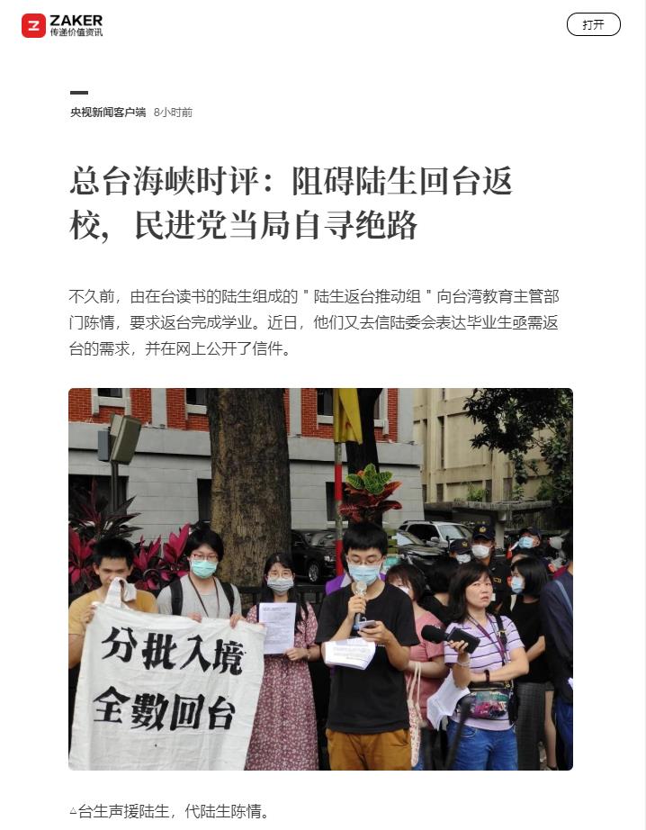 內地多家媒體紛紛轉載總臺《海峽時評》系列評論。