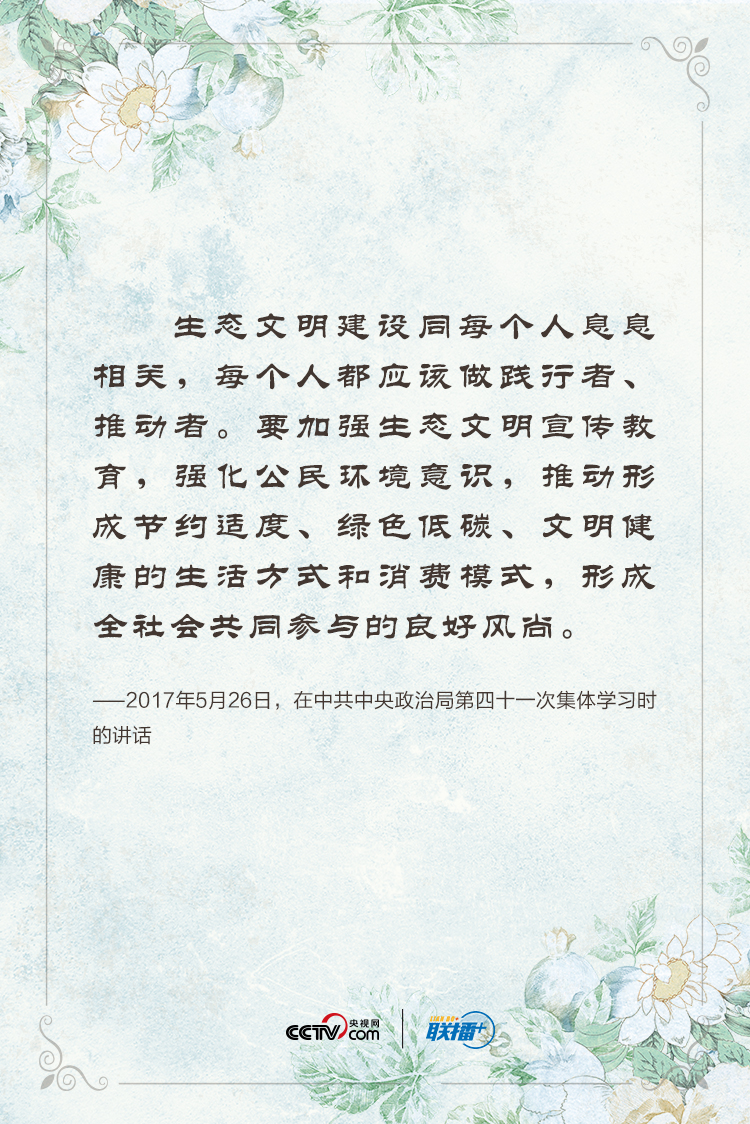央視網《聯播+》特梳理習近平相關論述,邀您一起“節”盡所“能”,踐行綠色低碳生產生活方式,自覺履行節能減排義務,共建舒適美麗的綠色家園。