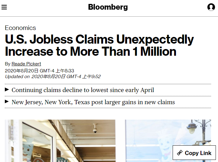 美國經(jīng)濟(jì)帶病復(fù)蘇:首次申請救濟(jì)人數(shù)再超百萬,失業(yè)問題長期化