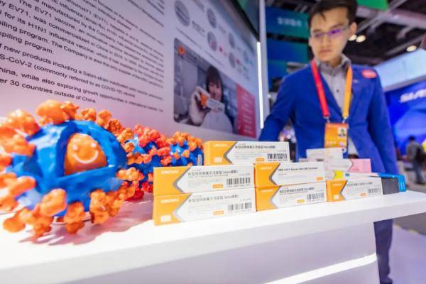 9月6日,在2020年中國國際服務貿易交易會上,國藥集團中國生物在綜合展區公共衛生防疫專區展出了抗擊新冠疫情的重磅成果實物,其中新冠病毒滅活疫苗首次亮相。該疫苗目前正在進行Ⅲ期臨床試驗,有望在2020年年底投入使用。