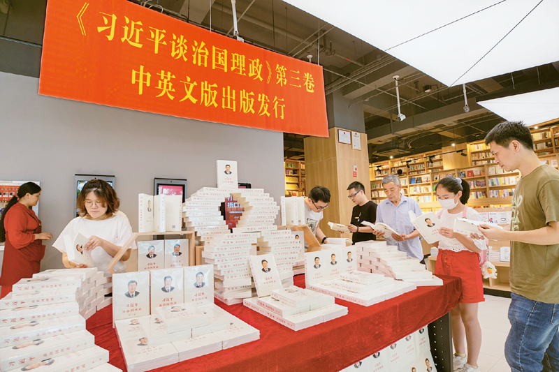 《習近平談治國理政》第三卷是充分反映黨的十九大以來習近平總書記領導全黨全國各族人民攻堅克難、砥礪前行偉大實踐的最新教材,是用習近平新時代中國特色社會主義思想武裝全黨、教育人民、推動工作的最新教材,是我們黨不忘初心、牢記使命、團結帶領人民創造更加幸福美好生活的最新教材,是為世界謀大同、推動構建人類命運共同體的最新教材。