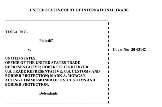 特斯拉,趕在訴訟到期前的最后幾天,把訴狀交到了美國貿易法院。