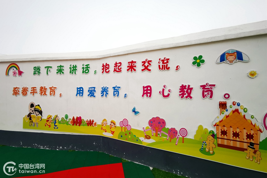灑拉地坡鄉(xiāng)幼兒園里的標語,格外醒目。(中國臺灣網(wǎng) 尹賽楠 攝)
