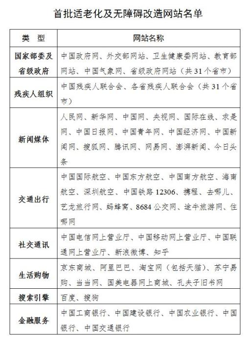 開展互聯(lián)網(wǎng)主要行業(yè)網(wǎng)站適老化及無障礙改造。緊密結(jié)合老年人、殘疾人等群體的實(shí)際需求,對(duì)《工業(yè)和信息化部 中國殘疾人聯(lián)合會(huì)關(guān)于推進(jìn)信息無障礙的指導(dǎo)意見》(工信部聯(lián)信管〔2020〕146號(hào))中提出的與老年人、殘疾人等群體工作、生活密切相關(guān)的公共服務(wù)類網(wǎng)站開展適老化及無障礙改造。首批優(yōu)先推動(dòng)國家相關(guān)部委及省級(jí)人民政府、殘疾人組織、新聞媒體、交通出行、金融服務(wù)、社交通訊、生活購物、搜索引擎等8大類、共115家網(wǎng)站進(jìn)行改造(網(wǎng)站名單見附件1)。中國互聯(lián)網(wǎng)協(xié)會(huì)協(xié)助基礎(chǔ)電信企業(yè)及網(wǎng)站接入服務(wù)商加快互聯(lián)網(wǎng)無障礙服務(wù)體系建設(shè),持續(xù)推動(dòng)互聯(lián)網(wǎng)信息無障礙環(huán)境建設(shè)健康發(fā)展。