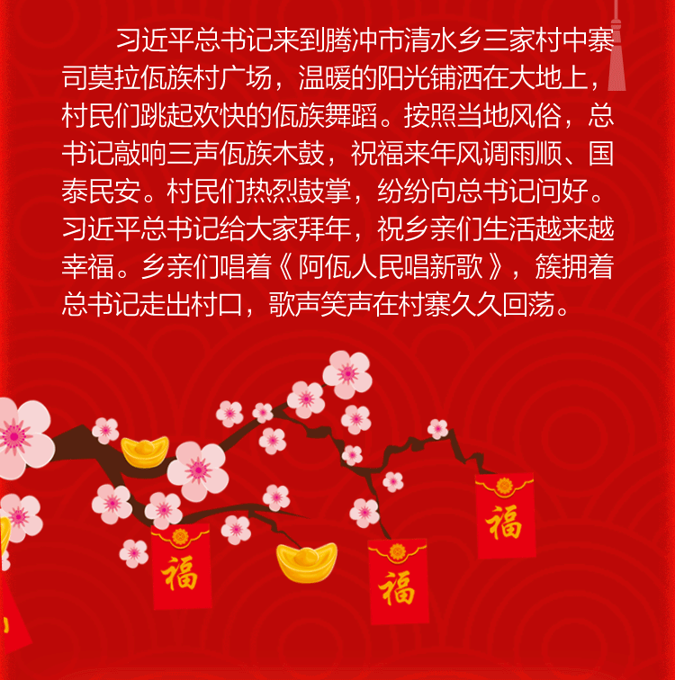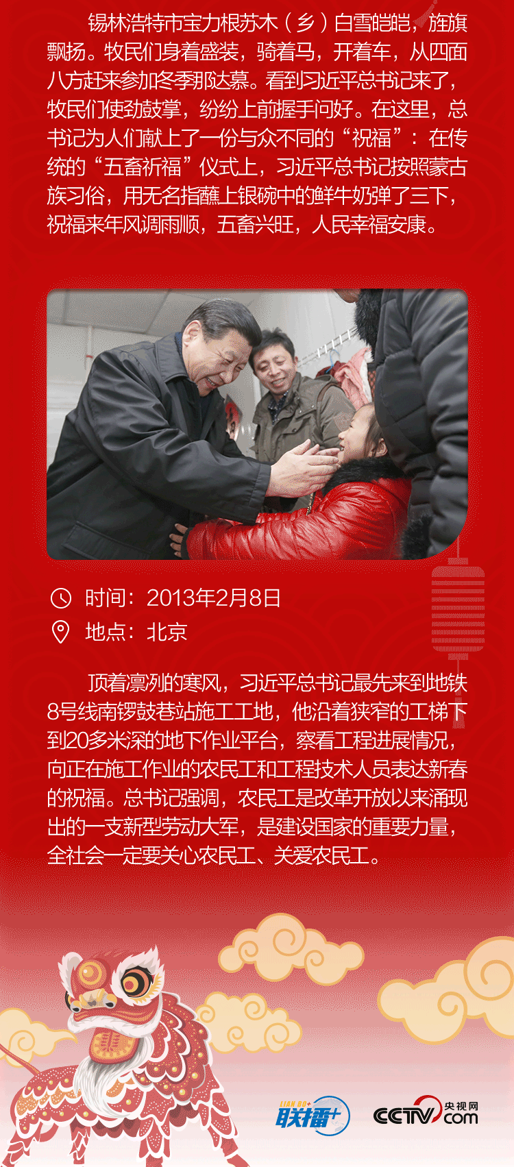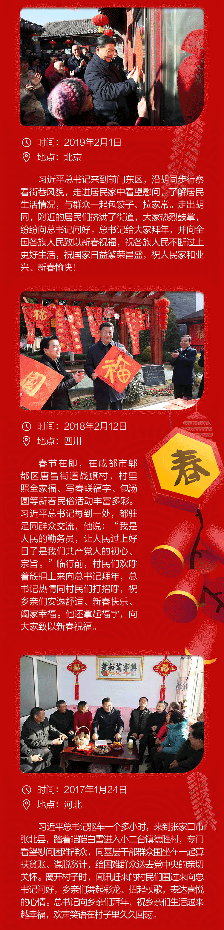 聯(lián)播+春節(jié)將至,中華大地到處洋溢著喜慶的氣息,氤氳著幸福的味道。無論國事多么繁忙,習近平總書記總要抽出幾天時間走到群眾中間,給大家拜年,并為他們送去最深情的祝福。