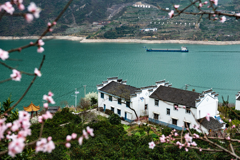 △這是2021年2月27日在三峽庫區秭歸縣屈原鎮西陵峽村拍攝的鮮花盛開的臍橙園。湖北省宜昌市秭歸縣在建設美麗鄉村中,因地制宜,在臍橙園里種植桃樹、李樹等果樹。