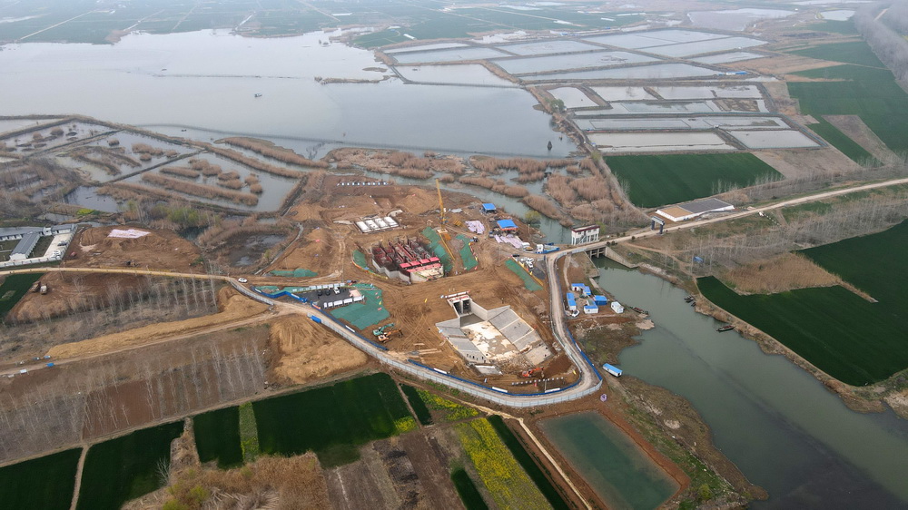 這是3月10日拍攝的蚌埠市固鎮縣懷洪新河水系洼地治理工程施工現場(無人機照片)。新華社記者 陳諾 攝