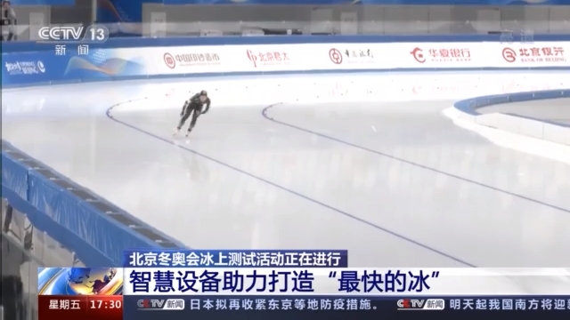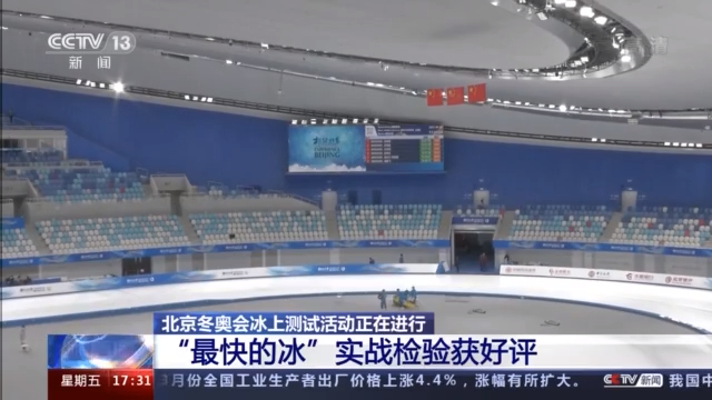 總臺記者 何暢:最快的冰,也就是現場我們看到的未來將用于短道速滑比賽的這塊冰面,這座場館用這種新的技術和高的標準一直在調試和打造這塊冰,希望在北京冬奧會的時候,速滑運動員可以在這塊冰面上創造出最快的世界紀錄。在過去的這幾天,這塊冰上也迎來了十幾場實戰檢驗。我采訪的很多參加測試活動的運動員,他們對這塊冰都紛紛進行了點贊,同時很多人也在這塊冰上創造了個人最好成績。