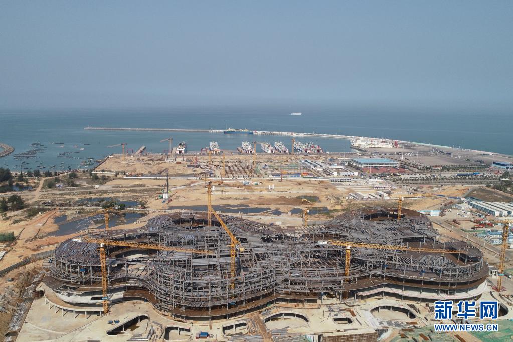這是2月20日拍攝的海口國際免稅城項目施工現場(無人機照片)。新華社記者 張麗蕓 攝