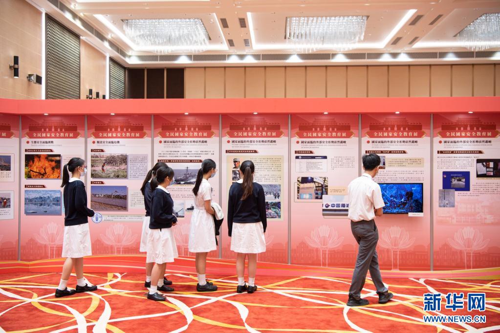 4月15日,學(xué)生在2021年“全民國家安全教育展”上參觀。