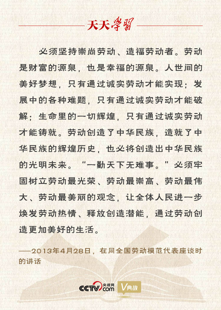 歷史是勇敢者創造的,時代是奮斗者書寫的。中華民族是勤于勞動、善于創造的民族。正是因為勞動創造,我們擁有了歷史的輝煌;也正是因為勞動創造,我們擁有了今天的成就。站在“兩個一百年”奮斗目標歷史交匯點上,我國工人階級和廣大勞動群眾要更加緊密地團結在以習近平同志為核心的黨中央周圍,勤于創造、勇于奮斗,努力在全面建設社會主義現代化國家新征程上創造新的時代輝煌、鑄就新的歷史偉業。ㄗ髡 楊立新)