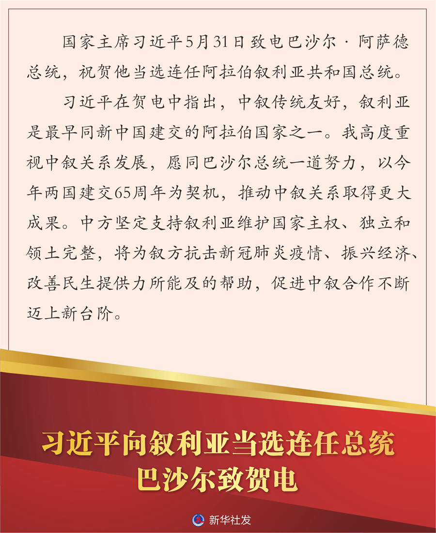 習(xí)近平向敘利亞當(dāng)選連任總統(tǒng)巴沙爾致賀電