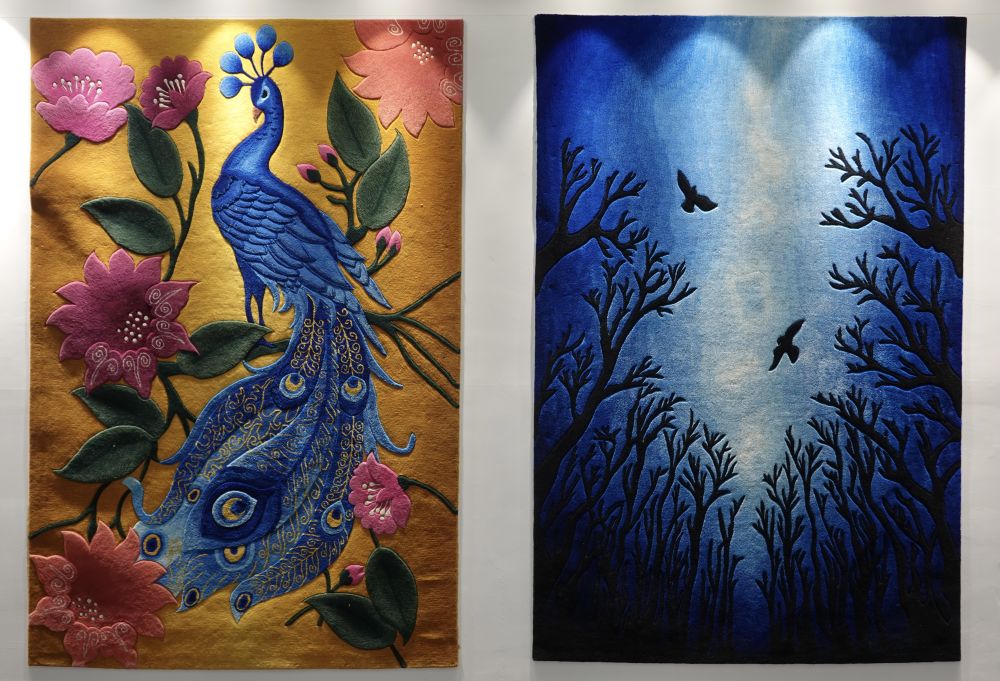 藏毯現(xiàn)在也被設(shè)計(jì)成大面積背景墻或裝飾畫,既可用于酒店裝飾,也可作為家居點(diǎn)綴,擁有獨(dú)特的市場(chǎng)前景。