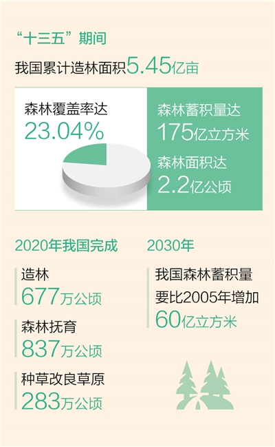 據悉,2000年到2017年全球新增綠色面積中,約1/4來自中國,中國貢獻比例居全球首位。2020年我國完成造林677萬公頃、森林撫育837萬公頃、種草改良草原283萬公頃。增加森林面積、提高森林質量、提升生態系統碳匯增量,將為我國碳達峰、碳中和目標、維護全球生態安全做出更大貢獻。