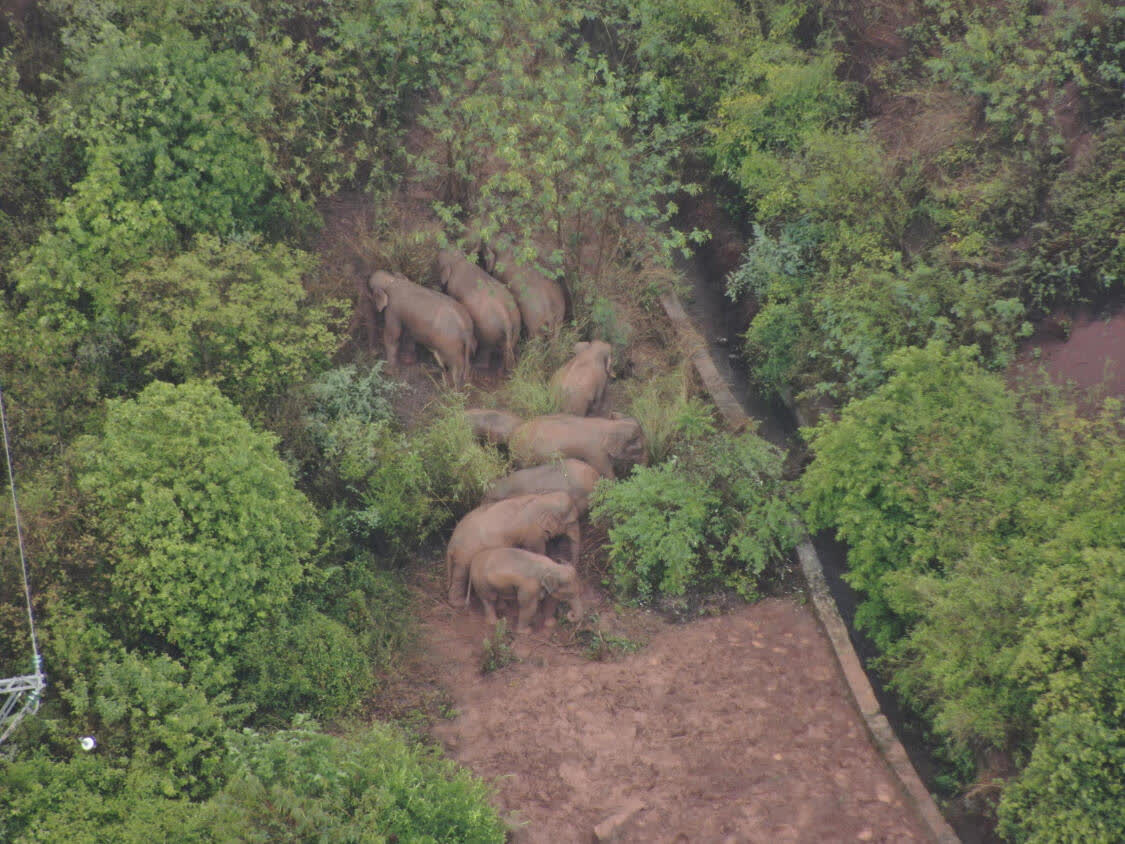 云南省森林消防總隊(duì)監(jiān)測(cè)顯示,象群6月11日凌晨1時(shí)22分象群進(jìn)入易門縣十街鄉(xiāng)西南方向山林,上午9時(shí),群象睡覺休息,云南省森林消防總隊(duì)搜尋監(jiān)測(cè)任務(wù)分隊(duì)5人持續(xù)跟蹤監(jiān)測(cè)。截止16時(shí),獨(dú)象位于昆明市安寧市八街街道,距離象群約16公里。