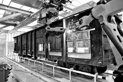 安徽合肥,報廢鐵路貨車被機器人自動拆解,通過深加工變成農機具、五金件等產品。 新華社發
