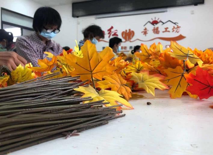 針對60至80歲仍有就業意愿的老年居民,安置區還開設了夕陽紅幸福工坊,工坊內提供手工插花技能培訓、生產加工等,每天有近40人在場內進行生產,也可以選擇在家加工制作!懊刻旖铀蛯O子孫女上下學,空閑時間就來這里,一天能做100多支手工花,有活干挺好的!63歲的韋鳳香搬來這里兩年多,工作的同時還認識了很多新鄰居。