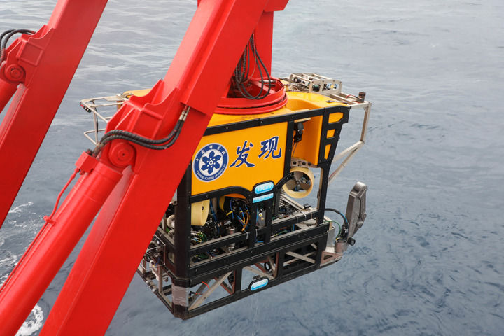 科考船上搭載的無人纜控潛器下潛作業21次