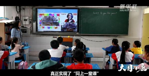 在重慶市石柱縣中益鄉小學,學生通過5G網絡可以和外教及學長學姐實時遠程交流。學校還翻新了教室、食堂,新建宿舍、音樂室、科技館等,孩子們的學習生活更加豐富多彩。