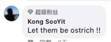 網友Kong SooYit留言:“就讓美國像鴕鳥一樣(逃避現實)吧!”