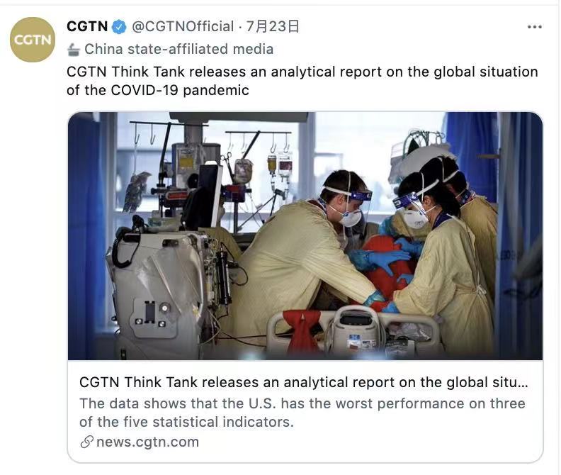 日前,美國彭博社更新了所謂“抗疫韌性排行榜”,美國位列第一、中國排在第八,排行榜還指出中國抗疫存在若干所謂“缺點”。CGTN就此作出回應,發布了《彭博社的全球抗疫排名體現了“商業第一,人民倒數第一”》一文,揭露彭博社“排行榜”的真相。