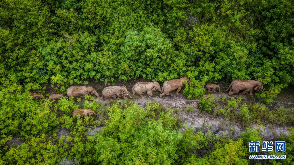 這是8月9日在云南省玉溪市元江縣境內(nèi)拍攝的象群(無人機照片)。新華社記者 胡超 攝