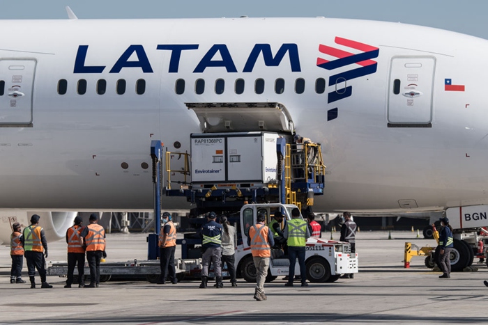 當地時間1月28日上午,首批近200萬劑由中國科興公司生產的新冠疫苗運抵智利首都圣地亞哥。新華社發(豪爾赫·比列加斯攝)