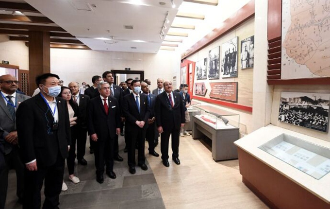 6月3日,阿拉伯國家駐華使節及阿盟駐華代表處代表等在西柏坡紀念館參觀。新華社記者 王曉 攝