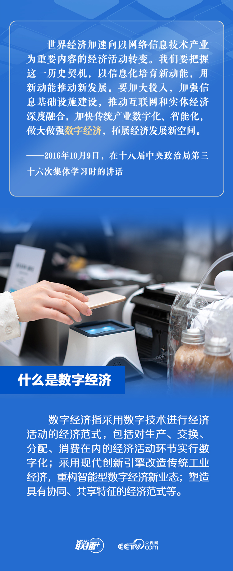 數(shù)字經濟是全球未來的發(fā)展方向。為了更好理解數(shù)字經濟的重要性,央視網《聯(lián)播+》特梳理習近平總書記關于數(shù)字經濟發(fā)展的重要論述,與您一起學習體會。