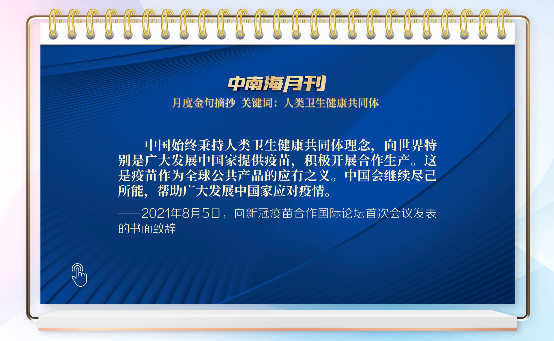 當前,新冠肺炎疫情起伏反復,病毒頻繁變異,疫情防控形勢依然嚴峻。“中國會繼續盡己所能,幫助廣大發展中國家應對疫情。”始終站在歷史正確的一方,站在人類進步的一方。8月,習近平主席頻繁開展“云外交”活動,為推進疫苗國際合作進程,構建人類命運共同體貢獻中國方案。世界比以往任何時候都更加深切體會到了構建人類命運共同體的遠見卓識和非凡意義。