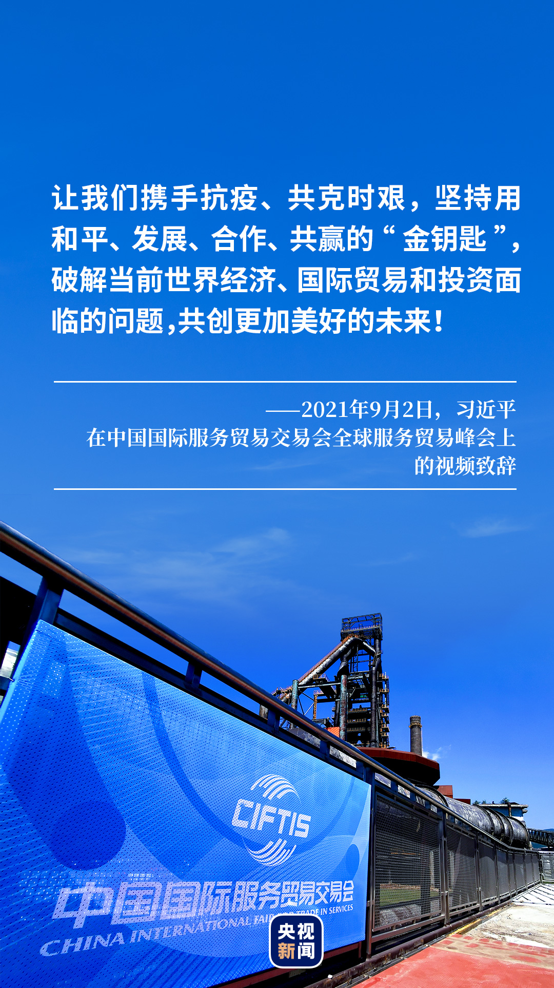 一年后,在2021年服貿(mào)會的致辭中,習(xí)近平主席重申全球要攜手抗疫、共克時艱,開創(chuàng)互利共贏的合作局面,共創(chuàng)更加美好的未來!