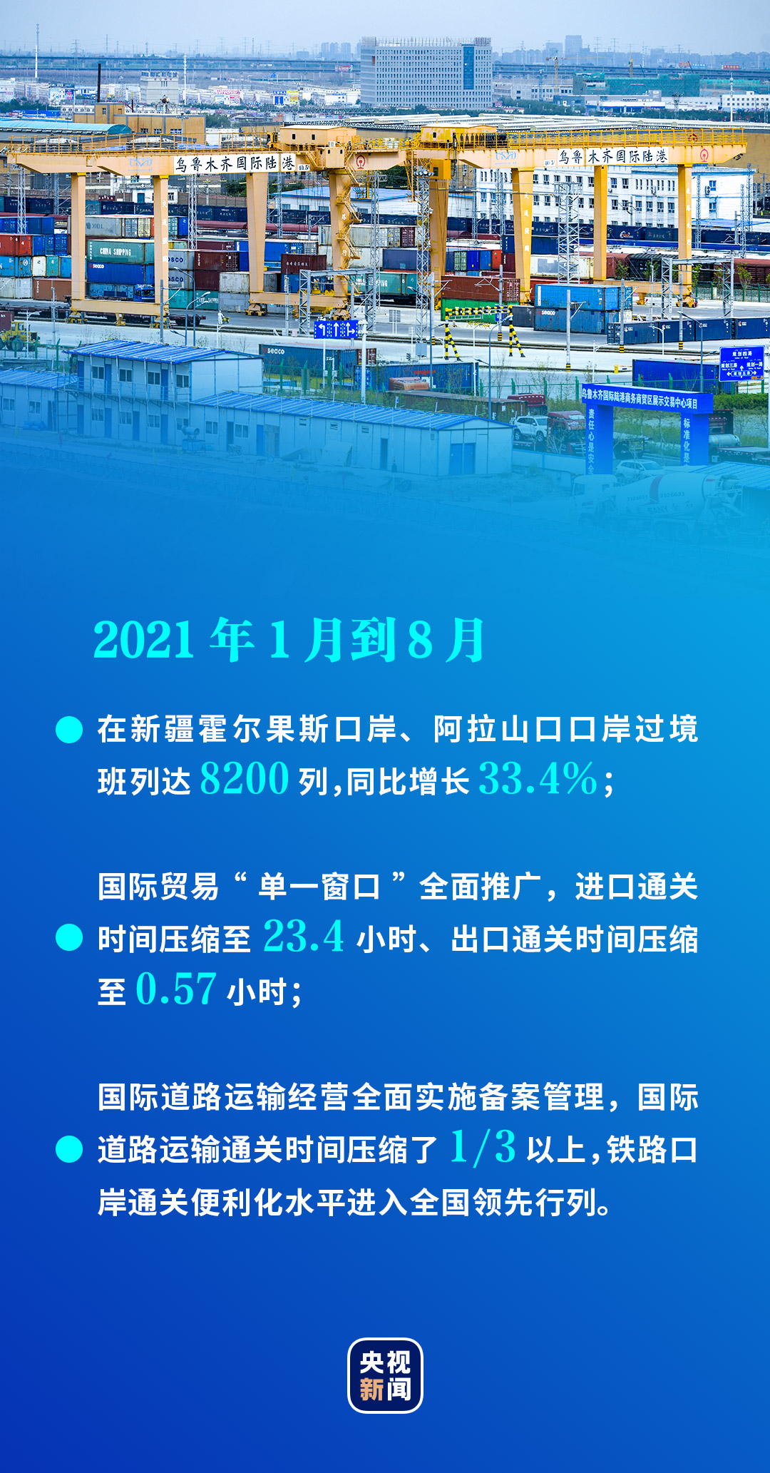 如今,在霍爾果斯、喀什、阿拉山口,數不盡的商品經由這里,穿梭于亞歐大陸。新疆,正以時代賦予的使命在共建“一帶一路”上迎來機遇之路、繁榮之路。