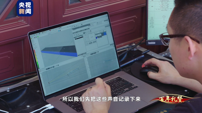 建黨百年慶祝大會音響保障指揮部工作人員 周鳳歆:對,固定觀禮臺,先是記錄下來,比如說我們想把聲音打到那個位置,現在低了,低了以后就會打到墻,打到墻就會帶來很多的反射,那這些反射就會影響別人。所以我們先把這些聲音記錄下來,然后我們最后再決定是怎樣調整。