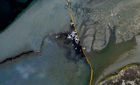△加利福尼亞州石油泄漏現場航拍圖