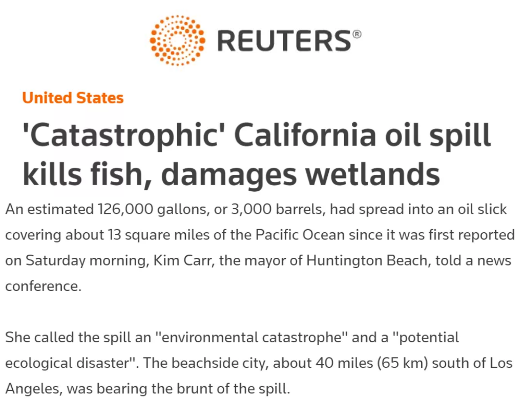 作為美國產油和煉油主產區的加州歷史上曾多次發生原油或燃料泄漏事故: