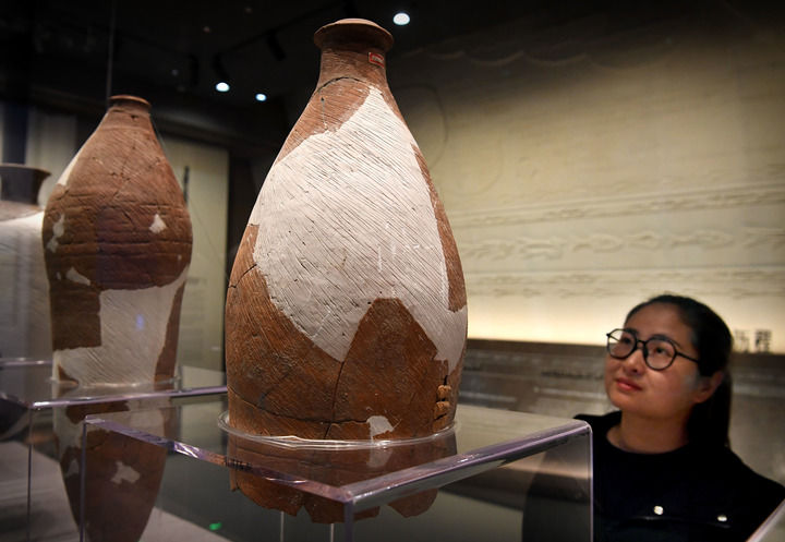參觀者在仰韶文化博物館內觀看展品(10月15日攝)。新華社記者 李安 攝