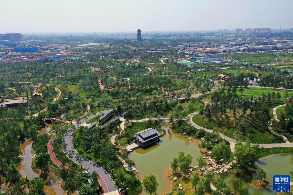 這是雄安新區悅容公園北苑內的景色(9月1日攝,無人機照片)。新華社記者 牟宇 攝
