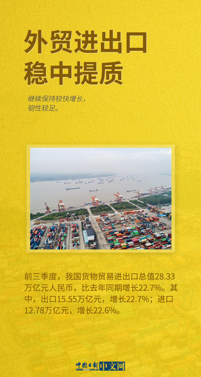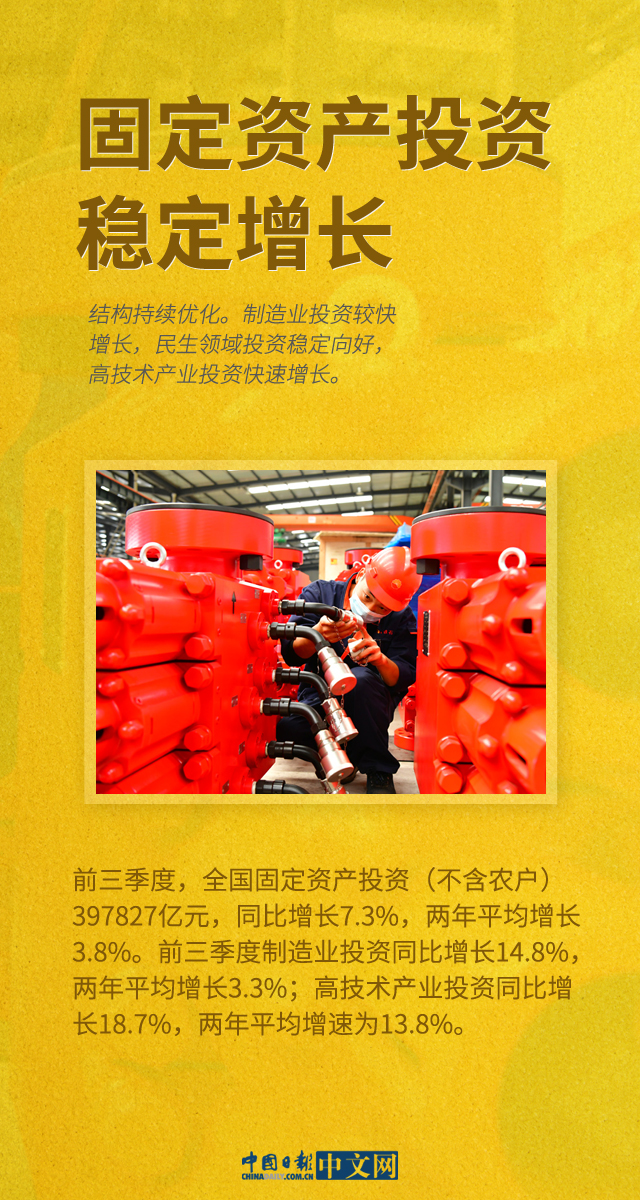 今年前三季度,我國統籌推進疫情防控和經濟社會發展,經濟保持穩步恢復,發展質量進一步提高!傲”“六保”工作成效顯著,就業優先政策顯效,糧食生產形勢總體較好,固定資產投資穩定增長……近期公布的一系列數據表明,中國經濟繼續保持健康、較好的增長,中國經濟內生動力依然強勁。